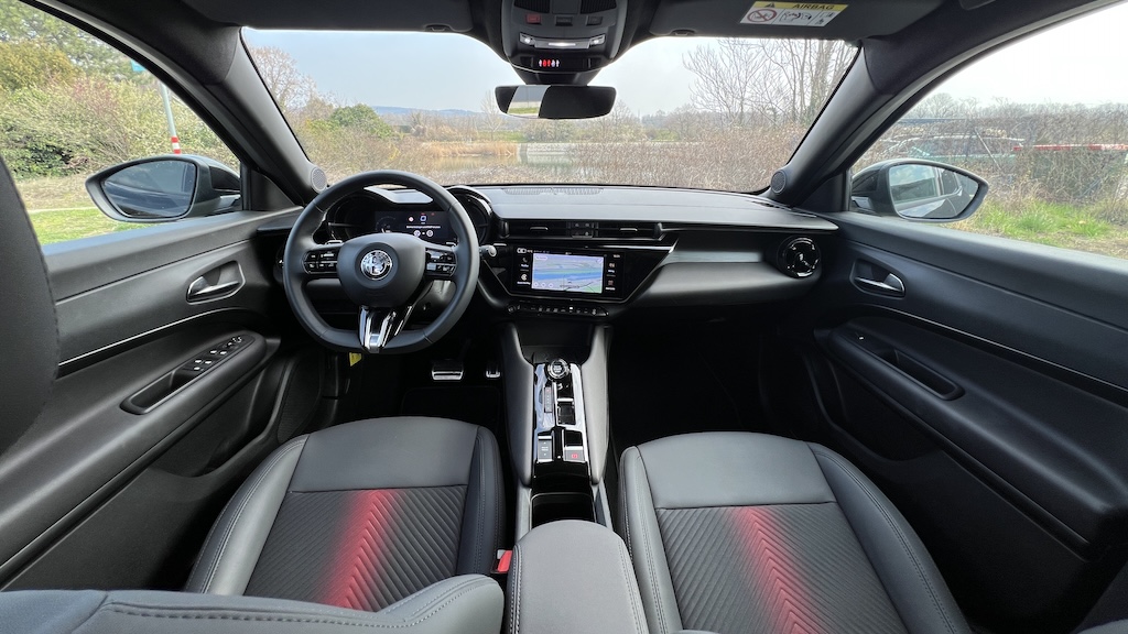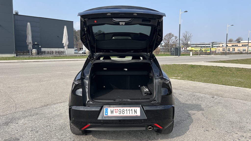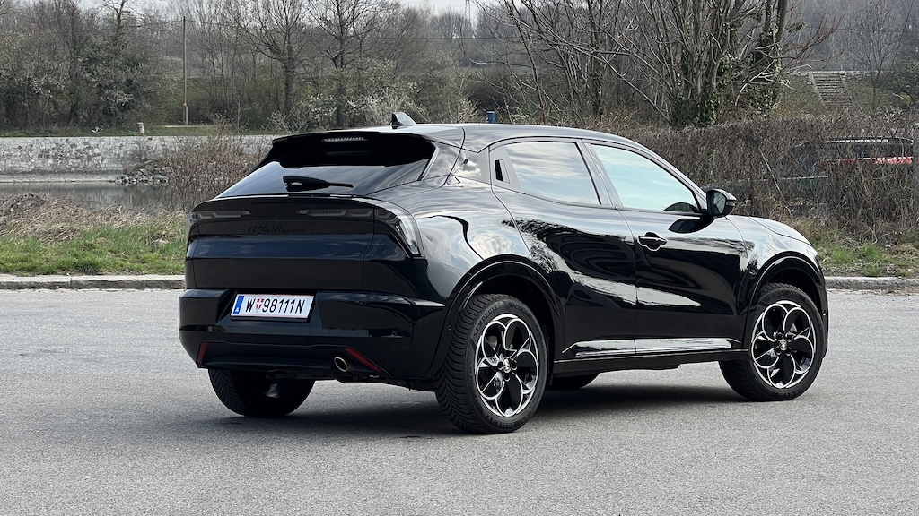 Der Junior ist ein Alfa durch und durch. Er ist kein Auto für schüchterne Menschen, er verdreht Köpfe und fällt auf. Selbst in gedeckten schwarz ist man vor den Blicken nicht sicher. Durch die CM-Plattform (Common Modular) von Stellantis kann er nun auch von den Tugenden der Schwestermarken profitieren und bekommt jetzt eine Allradunterstützung. Denn was den CMP-Q4 von anderen Allradlern unterscheidet ist, dass die Hinterachse nicht mit einer Kardanwelle angetrieben wird, sondern mit einem zusätzlichen elektrischen Motor im Heck. Das spart Gewicht und Komplexität. Dafür ist die Unterstützung nicht permanent.
